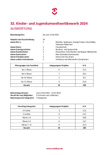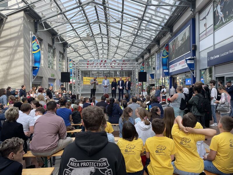 Zwischen Baum und Boom: In Cottbus/Chóśebuz sind am Mittwoch, 29.05.2024, die Sieger und Platzierten im Kinder- und Jugend-Umweltwettbewerb ausgezeichnet worden. Die Kita-Gruppen und Schulklassen hatten sich dazu speziell mit den Bäumen in der Stadt befasst.