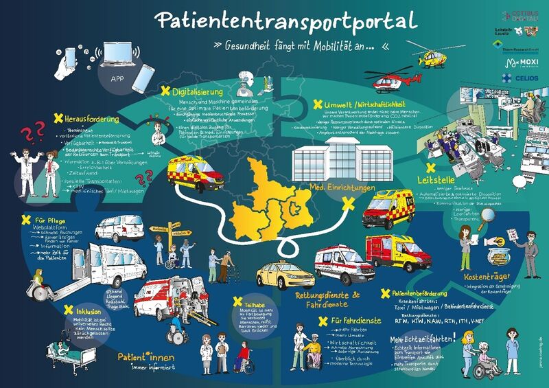 Seit heute ist nun auch die Schnittstelle zur Leitstelle Lausitz aktiv. Jetzt können Pflegekräfte in den Kliniken auch die Verlegungen und die qualifizierten Krankentransportfahrten – diese erfordern die Betreuung durch medizinisch qualifiziertes Personal - über das Portal bei der Leitstelle Lausitz buchen. Längere Telefonate und Übertragungsfehler gehören damit der Vergangenheit an! Zwei positive Effekte: das Personal in den Kliniken und der Leitstelle wird von zeitaufwendiger Verwaltungstätigkeiten entlastet, die Kranken effizienter versorgt.
