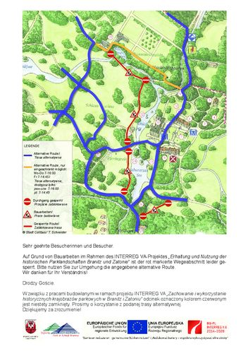 Die alternativen Routen sind auch unter www.cottbus.de/branitz-zatonie zu finden. Alle Besucherinnen und Besucher werden gebeten, die angegebenen Umleitungen zu nutzen. Auch nach Beendigung der direkten Bauarbeiten ist für die nachhaltige Qualität der Wege eine Liegezeit erforderlich. Die Wege dürfen in dieser Ruhezeit nicht genutzt werden und bleiben gesperrt.