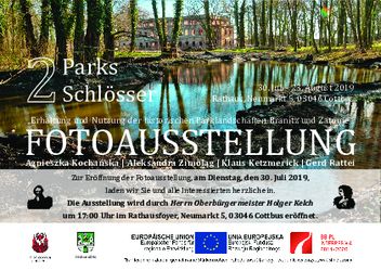 „2 Parks – 2 Schlösser" ist der Titel einer neuen Fotoausstellung, die Oberbürgermeister Holger Kelch am Dienstag, dem 30. Juli 2019, um 17:00 Uhr im Rathaus am Neumarkt 5 eröffnen wird. Die Fotografen Klaus Ketzmerick und Gerd Rattei, die Landschaftsarchitektin Agnieszka Kochańska und die Projektkoordinatorin Aleksandra Zimoląg haben die historischen Parklandschaften Branitz und Zatonie durch die Linse eingefangen und präsentieren ihre Werke in einer gemeinsamen Darbietung. Vom 31.07.2019 bis 23.08.2019 kann die Ausstellung von Montag bis Freitag zu den Öffnungszeiten des Rathauses besichtigt werden.