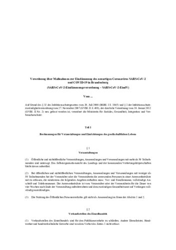Ebenfalls wurde die Personenanzahl sowohl bei öffentlichen als auch bei nicht öffentlichen Veranstaltungen auf 50 Teilnehmende begrenzt. Bei Zusammenkünften mit weniger Personen sind vom Veranstalter Anwesenheitslisten zu führen und aufzubewahren, um eventuelle Ansteckungswege nachvollziehen zu können. Weitere Details zur Rechtsverordnung sind nachzulesen am Ende dieser Seite und auf der Internetseite des Landes Brandenburg unter www.brandenburg.de . Die getroffenen Regelungen sind bis zum 19.04.2020 in Kraft gesetzt.