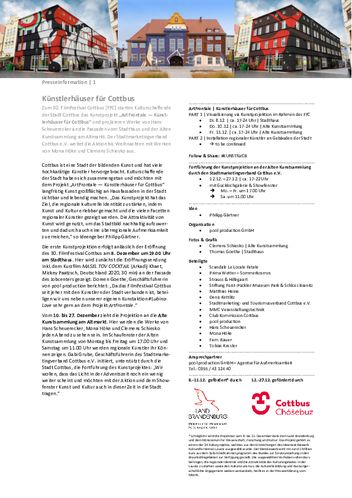Der Stadtmarketingverband Cottbus e.V. weitet die Aktion bis Weihnachten mit Werken von Mona Höke und Clemens Schiesko aus. Cottbus ist eine Stadt der bildenden Kunst und hat viele hochkarätige Künstler hervorgebracht. Kulturschaffende der Stadt haben sich zusammengetan und möchten mit dem Projekt „ArtFrontale — Künstlerhäuser für Cottbus“ langfristig Kunst großflächig an Hausfassaden in der Stadt sichtbar und lebendig machen.