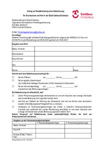 Der Präsenzunterricht an Grundschulen bleibt untersagt und die Horte sind geschlossen. Dafür gibt es nunmehr aktualisierte Unterlagen. Wer jedoch bereits einen rechtskräftigen positiven Bescheid über die Notbetreuung seines Kindes im Hort hat, braucht keine neuen Anträge auszufüllen.