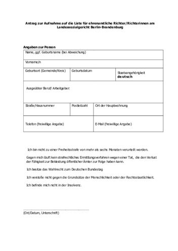 Antrag zur Aufnahme auf die Liste für ehrenamtliche Richter/Richterinnen am Landessozialgericht Berlin-Brandenburg ‧ PDF ‧ 60.44 KByte ‧ 03.03.2021