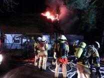 Die Feuerwehr traf kurz nach 03.30 Uhr an der Brandstelle ein. Mehrere Trupps bekämpften das Feuer sowohl von außen als auch im Inneren des Gebäudes. Gearbeitet wurde unter Atemschutz sowohl von Angehörigen der Berufswehr als auch von Kräften der Freiwilligen Feuerwehren. Während des Einsatzes im Haus brach ein Feuerwehrmann durch den Fußboden des Obergeschosses. Er blieb unverletzt.