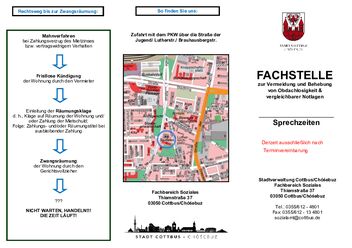 Dazu gibt es einen Flyer, zu finden unter: https://www.cottbus.de/.files/storage/file/16d32cb6-a566-4782-a09e-a317e26455a5/Fachstelle_Flyer_02-2022.pdf