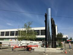 An der Stele „Energetische Reflexionen“ am Hauptbahnhof haben am Dienstag Reparaturarbeiten begonnen. Die Firma „build a rock“ überarbeitet dabei den Betonmantel der Mooreiche. Das soll helfen, dass sich die Mooreiche nicht immer wieder durch die Sonnenstrahlen im Hohlspiegel entzündet.