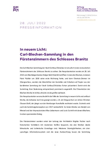 Presseinformation Carl-Blechen-Sammlung in den Fürstenzimmern des Schlosses Branitz ‧ PDF ‧ 618.16 KByte ‧ 28.07.2022
