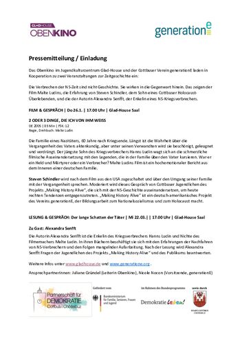 Das Obenkino im Jugendkulturzentrum Glad-House und der Cottbuser Verein generationE laden in Kooperation zu zwei Veranstaltungen zur Zeitgeschichte ein.