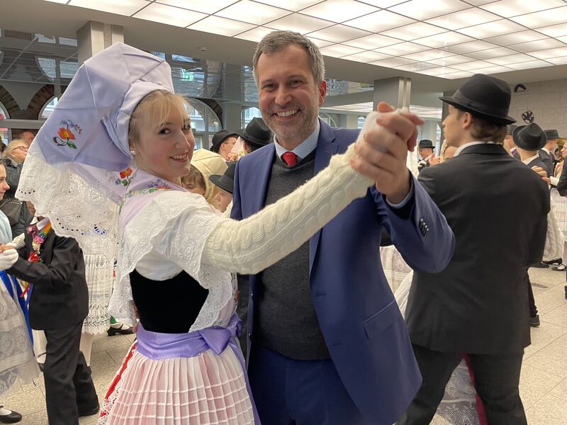 OB Tobias Schick: „Sorbische/wendische Traditionen sind ein Teil der Lebensfreude in unserer zweisprachigen Stadt. Wir stehen also gemeinsam vor der Aufgabe, bewährte Traditionen zu stärken und weiter zu pflegen sowie gleichzeitig Neues zu entwickeln und durchzusetzen. Das gilt natürlich besonders auch für den Erhalt der sorbischen/wendischen Sprache und Kultur in Cottbus/Chóśebuz. Die sorbischen/wendischen Bräuche und Traditionen sind neben der niedersorbischen Sprache identitätsstärkend für unsere Stadt. Sie haben ihren festen Platz im Leben, in den ländlich geprägten Ortsteilen und dank des Niedersorbischen Gymnasiums auch hier im Stadtzentrum. Uns ist es wichtig, Cottbus/Chóśebuz als Ort der authentischen unverfälscht erlebbaren sorbischen/wendischen Traditionspflege weiter zu profilieren. Auch die sorbischen/wendischen Traditionen wie der Kokot und der Zapust werden aktiv von den Schülerinnen und Schülern mit vorbereitet und gefeiert. Ich möchte an dieser Stelle auch die Entwicklung Ihrer Schülerfirma hervorheben und ich freue mich sehr, dass sie mit ihren Produkten an einem Stand zum Sorbischen/Wendischen Fest am 17.06. im Rahmen des Stadtfestes dabei sein wird.“