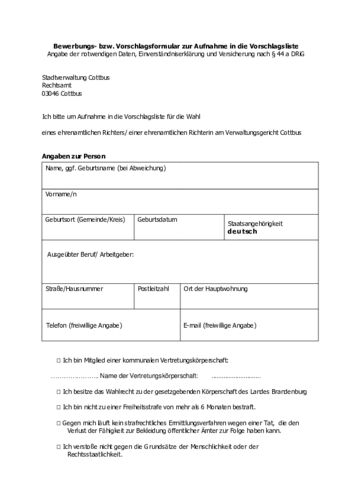 Interessenten bewerben sich bei der Stadtverwaltung Cottbus/Chóśebuz, Rechtsamt. Ein Formular kann von der Internetseite der Stadt unter www.cottbus.de/schoeffen oder von dieser Seite heruntergeladen werden. Nähere Informationen sind erhältlich unter Telefon 0355 612 2315 oder auf der städtischen Internetseite sowie im Rathaus.