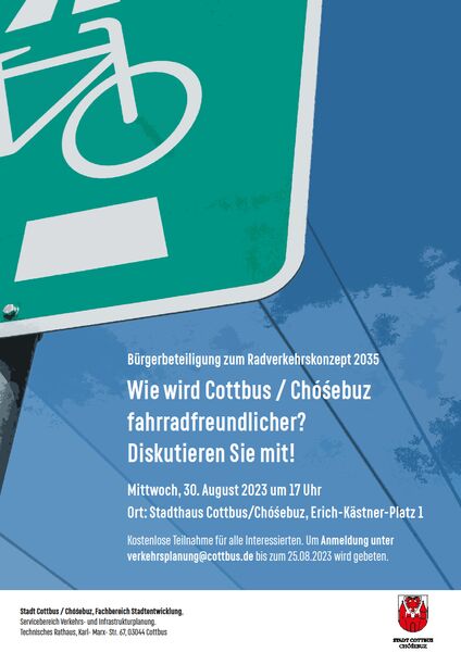Die Stadtverwaltung Cottbus/Chóśebuz ist überzeugt, dass eine attraktive und einladende Radinfrastruktur nur durch aktive Bürgerbeteiligung erreicht werden kann. Eine lebenswerte, zukunftsfähige und nachhaltige Stadt zu gestalten, ist eine Gemeinschaftsaufgabe.
