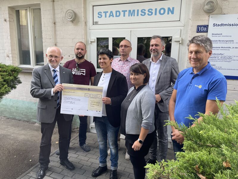 Die Cottbuser Rotarier haben der Stadtmission 3.500 Euro als Unterstützung für laufenden Vorhaben zur Verfügung gestellt. Das Geld stammt aus den Einnahmen des jährlichen Benefizkonzertes des Rotary-Clubs. Die Stadtmission als Adressat der Unterstützung geht auf einen Vorschlag von Oberbürgermeister Tobias Schick zurück, der die Einrichtung im Frühjahr besucht hatte.