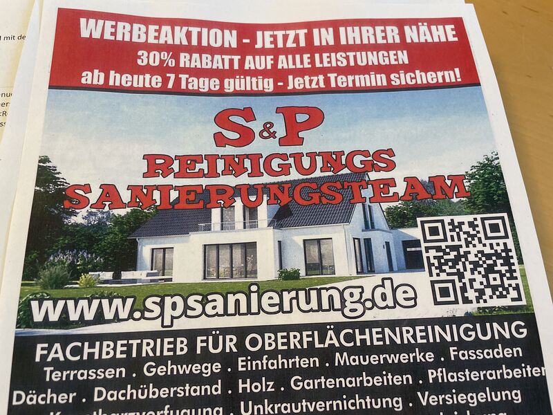Die Stadtverwaltung Cottbus/Chóśebuz warnt vor aktuellen werblichen Angeboten des Unternehmens „S&P Reinigungs Sanierungsteam“ mit Angeboten in Bezug auf gewerbliche Leistungen wie Gartenarbeiten, Pflasterarbeiten sowie Malerarbeiten. Diesem Angebot sollte man nicht ungeprüft vertrauen.