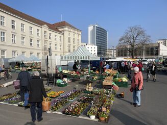 Der Cottbuser Wochenmarkt wächst saisonal: Das Markttreiben am Mittwoch ist ab heute wieder zusätzlich auf den Post-Parkplatz erweitert worden. Zudem gibt es die gewohnten Angebote auf dem Berliner Platz vor der Stadthalle. Eine Vielzahl von Gärtnern bereichert nun wieder den Cottbuser Wochenmarkt. Neben dem Pflanzen-Angebot sind die Sortimente wie Fleisch- und Wurstwaren, Fisch, Backwaren, Imbiss, Milchprodukte und Waren des täglichen Bedarfs weiter vertreten.