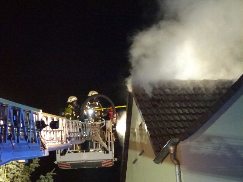 Die Feuerwehrleute kämpften unter Atemschutz sowohl im Gebäude als auch von außen gegen den Brand. Dieser zeigte sich durch eine massive Rauchentwicklung und Flammen auf der Nordseite des Daches. Nach ca. einer Stunde war der Vollbrand unter Kontrolle. Weitere Brandnester konnten anschließend nach Öffnung der Dachhaut und der Dämmung gelöscht werden. Der Einsatz konnte erst in den Morgenstunden beendet werden.
