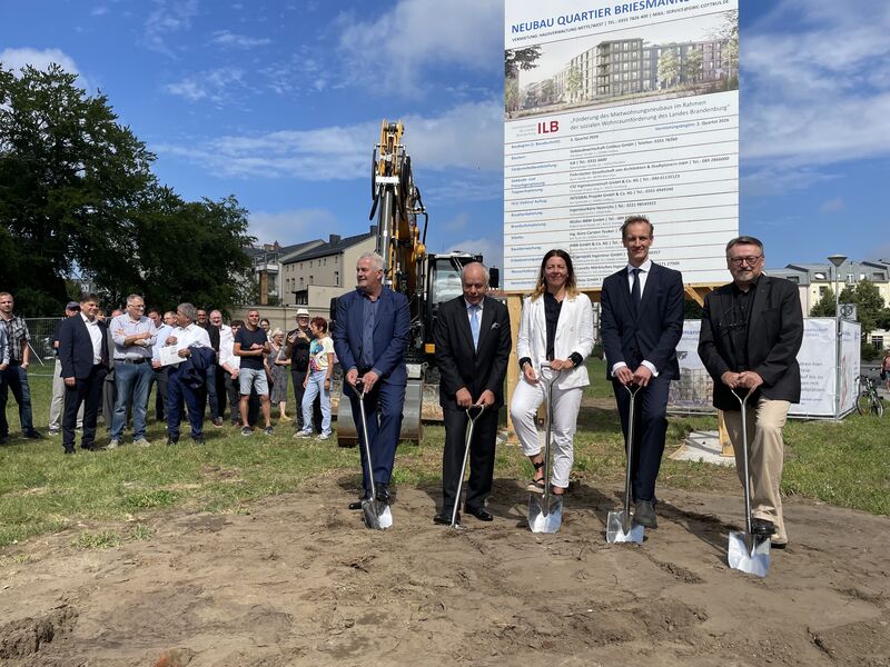 In der Briesmannstraße ist am Donnerstag, 11.07.2024, der erste Spatenstich für ein neues Wohnbau-Vorhaben erfolgt. Bauherr ist die Gebäudewirtschaft Cottbus GmbH, die allein im ersten von insgesamt drei Bauabschnitten ca. 18 Millionen Euro investiert. Hier werden bis zum Sommer 2026 insgesamt 44 Wohnungen entstehen.