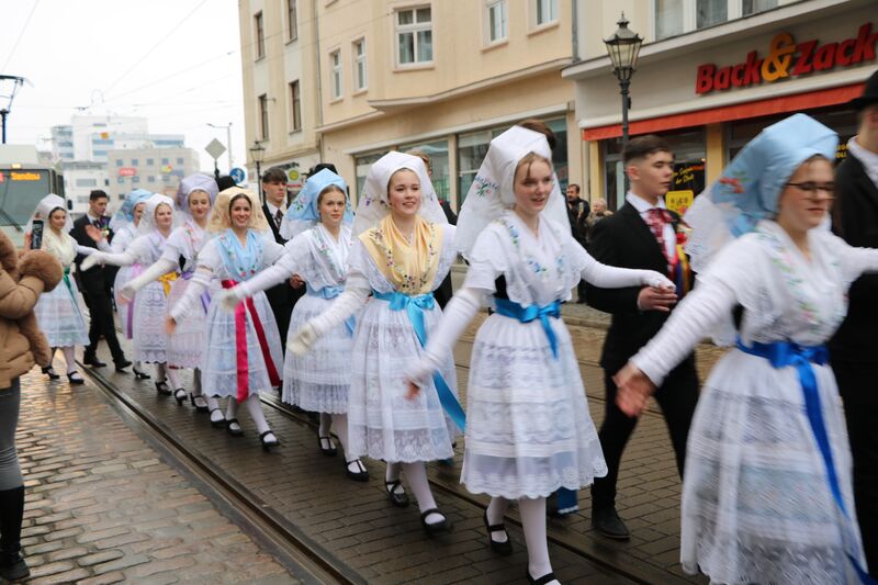 Dies gilt nicht nur für die nach Cottbus/Chóśebuz eingemeindeten Dörfer bzw. unsere ländlich geprägten Ortsteile, sondern auch für die traditionell urban geprägten Viertel unserer Stadt. Letzteres scheint oft übersehen zu werden und bedarf daher meines Erachtens einer gründlicheren Forschung. Unsere Stadt kann aber auch für sich in Anspruch nehmen, dass ihre Einwohnerschaft neue sorbische/wendische Bräuche und Feste entwickelt hat, so den Zapust-Festumzug des Niedersorbischen Gymnasiums. Dies stellt eine Rückholung dieses Brauches in die städtischen Mauern dar – auch als Ersatz für die Dörfer in der Niederlausitz, in denen wegen ihrer bergbaubedingten Zerstörung dieser Brauch nicht mehr gepflegt werden kann. Zweitens möchte ich auf unser „Sorbisches/wendisches Fest“ im Rahmen unseres Cottbuser Stadtfestes hinweisen. Das Fest ist zum Kulminationspunkt sorbischer/wendische Sprache und Kultur geworden.“