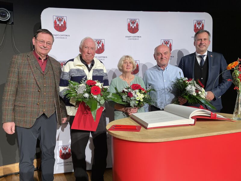 Mit der Eintragung in die Ehrenchronik ausgezeichnet wurden Lieselotte Bischoff für ihr jahrelanges Wirken in der Selbsthilfegruppe Augenerkrankungen sowie im Betreuungsverein der Diakonie. Der frühere Vorsitzende des Bürgervereins Ströbitz, Wolfgang Fischer, wurde für sein En- gagement im Stadtteil im Sinne einer erweiterten Bürgerbeteiligung mit der Eintragung geehrt. Wolfram Franke vom RSC Cottbus blickt auf mehr als 40 Jahre ehrenamtliche Arbeit im Veloteam Cottbus sowie als Organisator verschiedenster Breitenveranstaltungen im Radsport zurück.