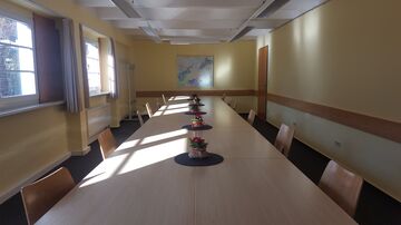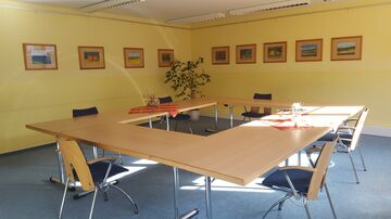 - Tafeln, Flipchart und Moderationswände für Fortbildungsveranstaltungen sind vorhanden.