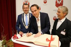 Patrice Bessac, Bürgermeister von Montreuil, sorgte bei seiner Rede zu Freiheit, Demokratie und Völkerverständigung für glanzvolle Momente bei der Stadtverordnetenversammlung am 25. September 2019.Tags darauf trug er sich während der Feierstunde anlässlich des 60-jährigen Bestehens der Partnerschaft in das Goldene Buch der Stadt Cottbus/Chóśebuz ein.