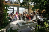 Bei gemeinsamen Kennlernspielen und einem kreativen Workshop haben die kleinen Freunde trotz der unterschiedlichen Sprachen schnell Kontakt zueinander gefunden und ohne Scheu miteinander gespielt. Sie fuhren mit der Bimmelbahn in die Bonbon-Manufraktur von Zielona Góra und haben dort in einem Workshop selbst Süßigkeiten hergestellt. Außerdem haben sie auf Bachus´ Spuren einen Spaziergang durch die sehenswerte Altstadt von Zielona Góra unternommen und im berühmten Palmenhaus eine Gauklerpräsentation bewundert.