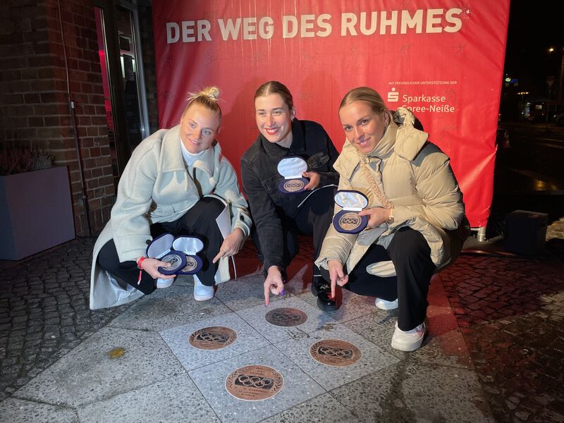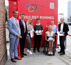 Auf Initiative der Deutschen Olympischen Gesellschaft Stadtgruppe Cottbus und mit Unterstützung der Sparkasse Spree-Neiße wurden 76 Plaketten in den Bürgersteig vor dem Cottbuser Rathaus eingelassen, die Einwohner und Besucher an die großen Leistungen der Cottbuser Olympioniken erinnern.