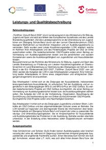 „Türöffner: Zukunft Beruf 2022“ ist ein Landesprogramm des Ministeriums für Bildung, Jugend und Sport und wird aus Mitteln des Europäischen Sozialfonds und des Landes Brandenburg gefördert. Ziel des Landesprogramms ist die Unterstützung von Jugend-lichen am Übergang Schule-Beruf durch auf den Lernort Oberstufenzentrum (OSZ) bezogene Maßnahmen zur beruflichen Integration und um Ausbildungsabbrüche zu vermeiden.