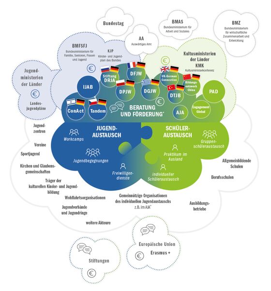 Im schulischen Bereich ist die Initiative „Austausch macht Schule“ kompetent präsent. Hier finden sich weiterführende Informationen zum Thema "Das Feld des Internationalen Schüler- und Jugendaustausches".