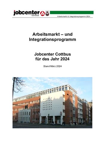 Dieses beschreibt die wesentlichen Planungen, Eckpunkte und Ziele der aktiven Arbeitsmarktpolitik des Jobcenters Cottbus.