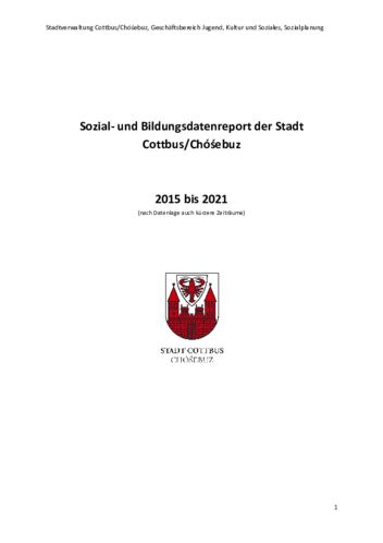 Sozial- und Bildungsdatenreport der Stadt Cottbus/Chóśebuz 2015 bis 2021 ‧ PDF ‧ 2.26 MByte ‧ 21.06.2023