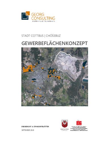 Die Stadt Cottbus/Chóśebuz hat im September 2020 die Fortschreibung ihres Gewerbeflächenkonzeptes fertiggestellt, das die nachhaltige Flächenentwicklung für das Stadtgebiet zum Ergebnis hat. Basis einer erfolgreichen städtischen Wirtschaftsentwicklung ist die ausreichende und an den Erfordernissen der Wirtschaft orientierte Verfügbarkeit von Flächen. Vor diesem Hintergrund hat der Fachbereich Stadtentwicklung das Strategiekonzept für die Gewerbeflächen mit dem Hamburger Beratungsinstitut Georg Consulting fortgeschrieben. Das Dortmunder Büro für Regionalanalyse unterstützte die Stadt bei der GIS-gestützten Flächenerhebung und mit dem Aufbau digitaler Informations- und Standortsysteme.
