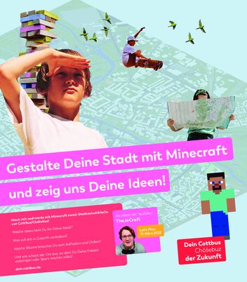 Mit diesem Projekt erfolgt nun jedoch der Schritt in die digitale Welt. Mit dem Open-World- Computerspiel Minecraft , dem YouTuber TheJoCraft (Josef Heinrich Bogatzki) sowie einer interaktiven Beteiligungsplattform soll die junge Generation Ideen und Vorschläge für die Zukunft ihrer Heimatstadt entwickeln und virtuell errichten. Dabei können alle Cottbuserinnen und Cottbuser, im Alter von 9 bis 18 Jahren, gesamtstädtisch die Orte benennen, die sie gut finden oder für sie konkrete Vorschläge haben. Im Verlaufe des Verfahrens sollen alle Beteiligten mit ihren Ideen konkret im Ortsteil Sielow an der Gestaltung des „Rodelberges“ mitwirken. Die Kinder- und Jugendlichen werden beim gesamten Prozess sowohl fachlich als auch pädagogisch begleitet.