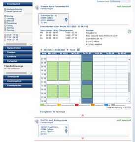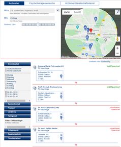 - Links erscheinen Auswahlfelder. Wählen Sie dort die gesuchte Fachrichtung aus. Daraufhin werden alle Ärztinnen und Ärzte bzw. alle Psychotherapeuten der gesuchten Fachrichtung aus Cottbus angezeigt.