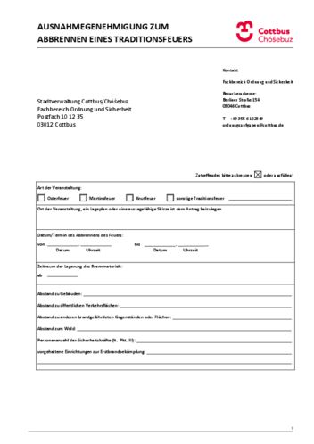 Antrag auf Ausnahmegenehmigung zum Abbrennen eines Traditionsfeuers (Osterfeuer)