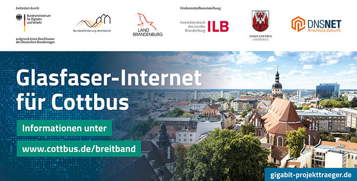 Was von der Stadt Cottbus/Chóśebuz vorausschauend vorbereitet wurde, nimmt nun Gestalt an. Am 22. September 2020 wurde beim feierlichen Spatenstich für „Cottbus als Gigabitstadt“ der Vertrag zwischen der Stadt Cottbus/Chóśebuz und dem ausbauenden Unternehmen und Netzbetreiber, der DNS:NET, unterzeichnet.