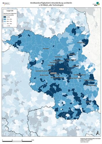 Das Bundesprogramm fördert Gebiete, die bislang mit weniger als 30 Megabit pro Sekunde versorgt sind. Alle 14 brandenburgischen Landkreise und die kreisfreien Städte Cottbus, Frankfurt (Oder) und Brandenburg an der Havel haben sich beteiligt.