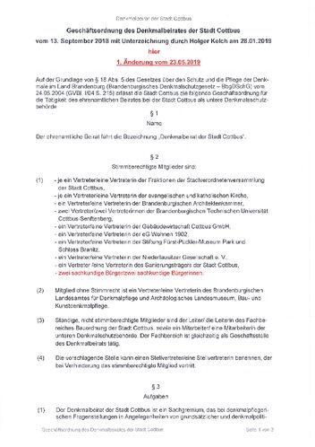 Der Denkmalbeirat wird für die Dauer der Legislaturperiode der Stadtverordnetenversammlung berufen. Ihm gehören Vertreterinnen und Vertreter der Kommunalpolitik, für die Stadt bedeutender Institutionen und Gesellschaften, der Kirche sowie Bürgerinnen und Bürger an. Als Mitglieder ohne Stimmrecht begleiten Vertretende des Brandenburgischen Landesamtes, die Leiterin/der Leiter des Fachgebiets Bauordnung der Stadt Cottbus und Mitarbeitende der unteren Denkmalschutzbehörde die Arbeit des Beirats.
