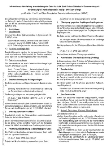 Information zur Verarbeitung personenbezogener Daten durch die Stadt Cottbus/Chóśebuz in Zusammenhang mit der