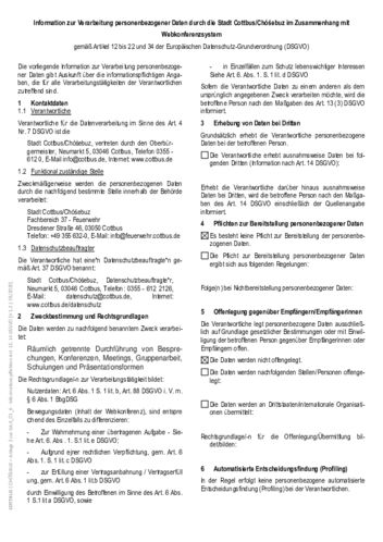 Information zur Verarbeitung personenbezogener Daten durch die Stadt Cottbus/Chóśebuz im Zusammenhang mit
