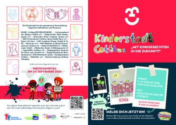 Wie auch im letzten Jahr konntet ihr in der Kinderstadt das Leben in *eurer* Stadt gestalten. Was war neu? Die Kinderstadt stand in diesem Jahr vor einer besonderen Aufgabe. Genau wie die Stadt Cottbus/Chóśebuz hat auch die Kinderstadt das Thema Kinderrechte unter die Lupe genommen. Wir haben den Weltkindertag der Stadt Cottbus mitgestaltet!